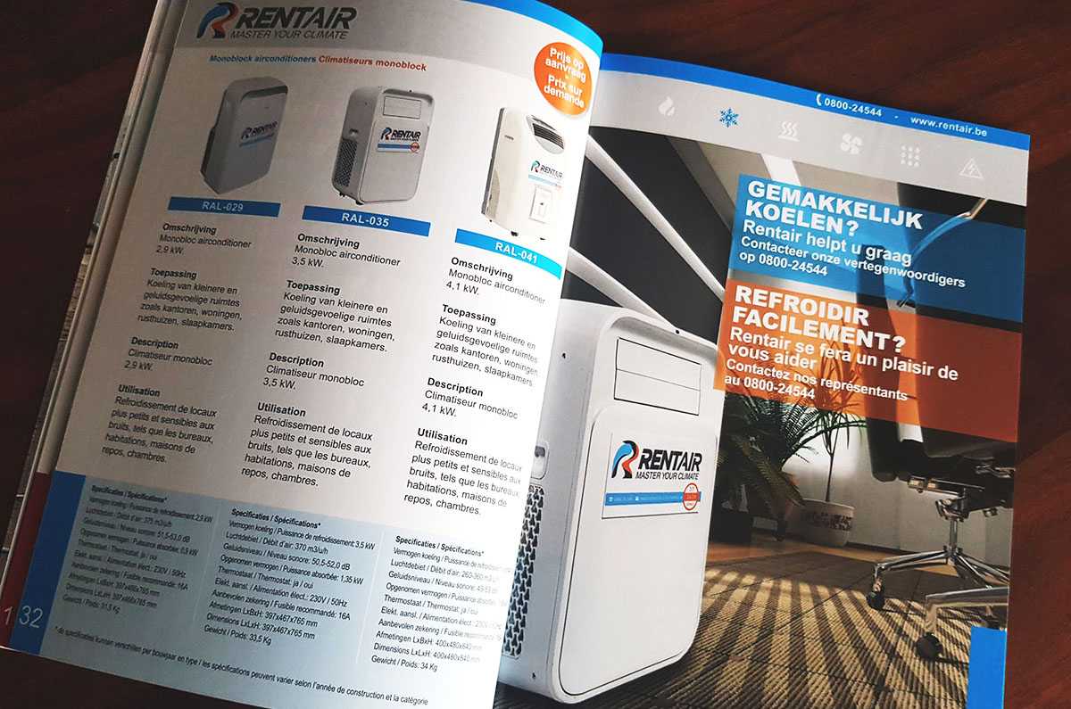 Rentair verzorgt al jaren oplossingen voor klimaatproblemen bij allerlei projecten. Voor de bouw, evenementen, kantoren, ziekenhuizen, renovaties, noem maar op. Te koud, te warm, te nat, te droog… Rentair heeft een oplossing. In de verhuurbrochure staan de mogelijkheden en vele voorbeelden van plaatsing in de praktijk. Lekker handig en overzichtelijk, Nederlands- en Franstalig en voorzien van allerlei specificaties.